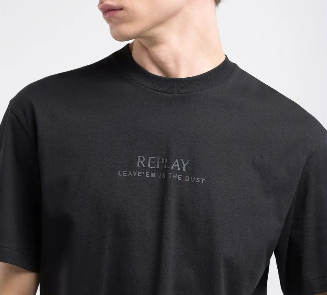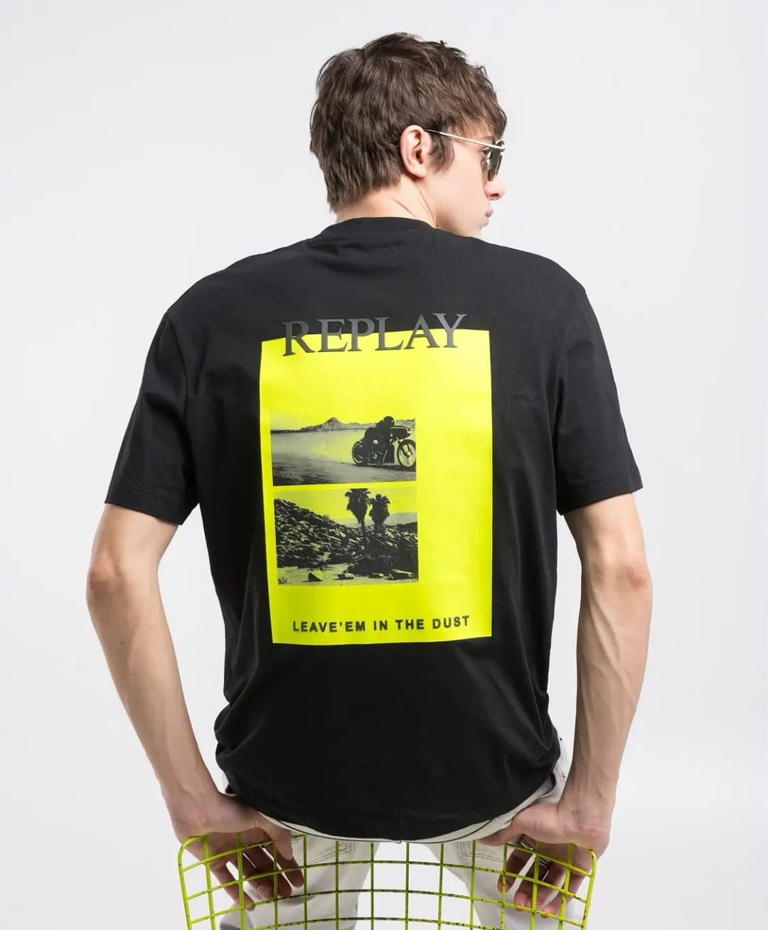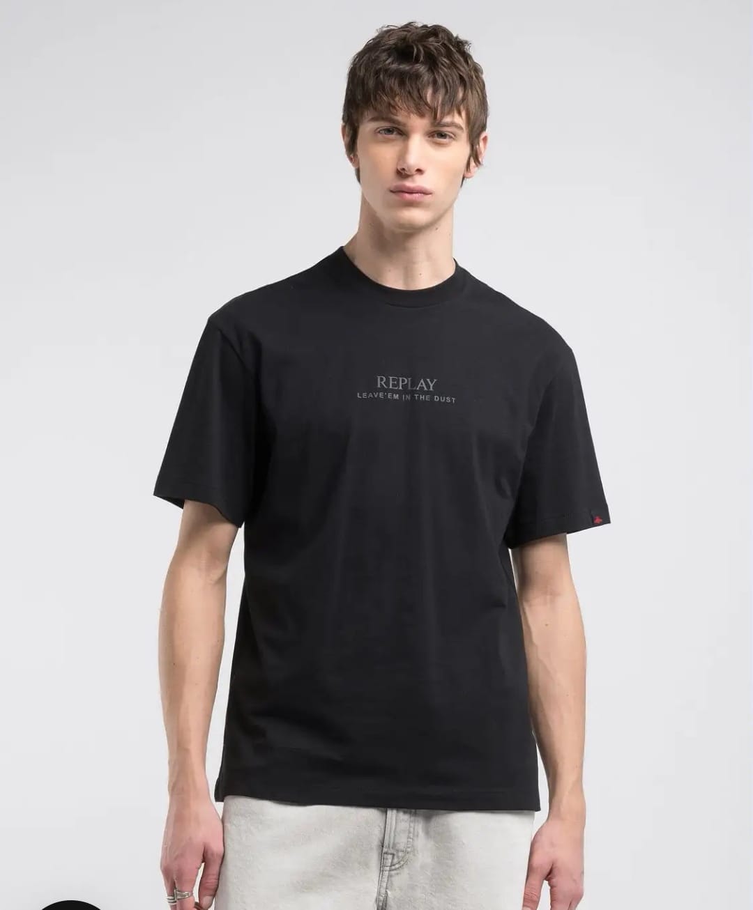 Camiseta Replay 100% algodón,corte Relajado, Estampado de letras en la parte frontal y parte de atrás Estampado Fotografico en contraste,color Negro.