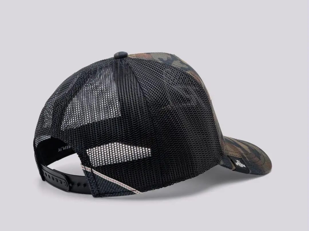 Gorra Replay de Sarga de algodón,parte posterior con malla de red,estampado de camuflaje y parche en la parte delantera.