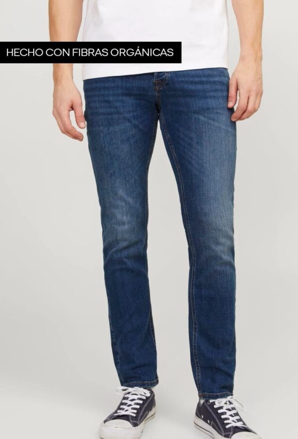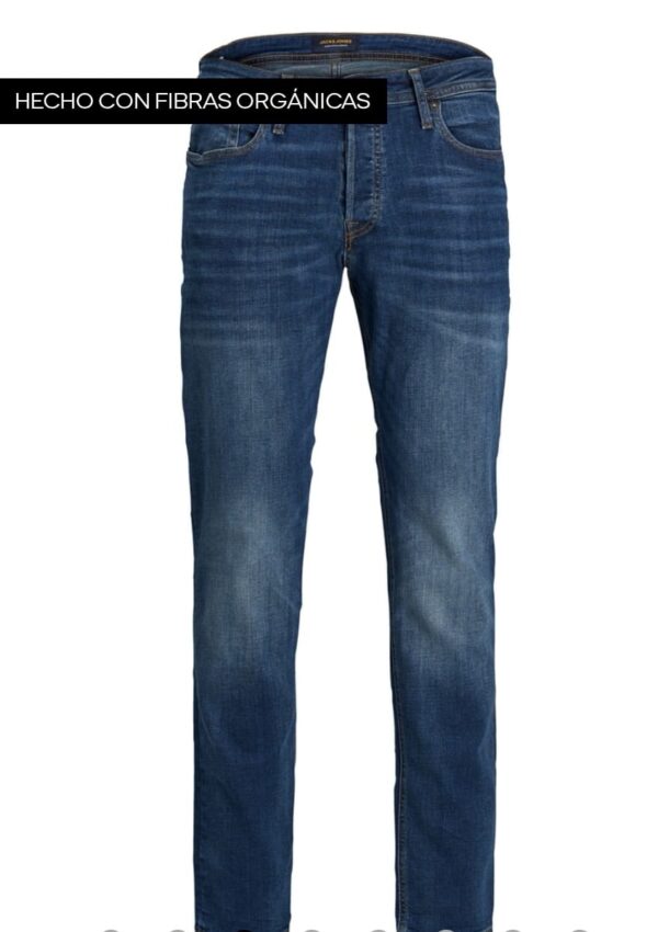 Pantalón Jack&Jones ,corte Slim Straight ,bragueta con botones ,cintura de talle medio,color Blue Denim
