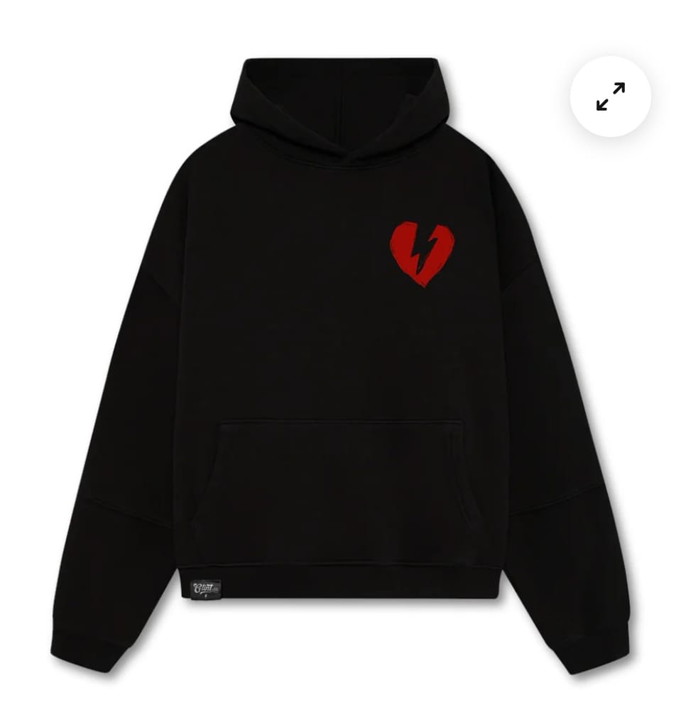 Sudadera Glint 100%algodón ,con capucha y corte Oversize, en la parte delantera corazón en relive con el logo,parte de atrás carta vintage ,color Negro.